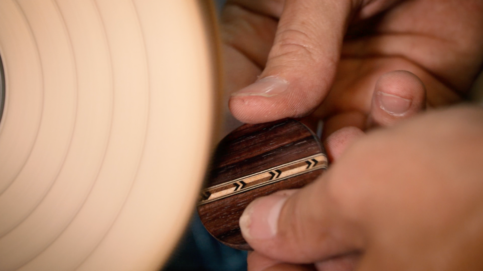 Macassar and Brass Ebony Necklace: Handmade Wood Pendant with Abalone & Brass Inlay